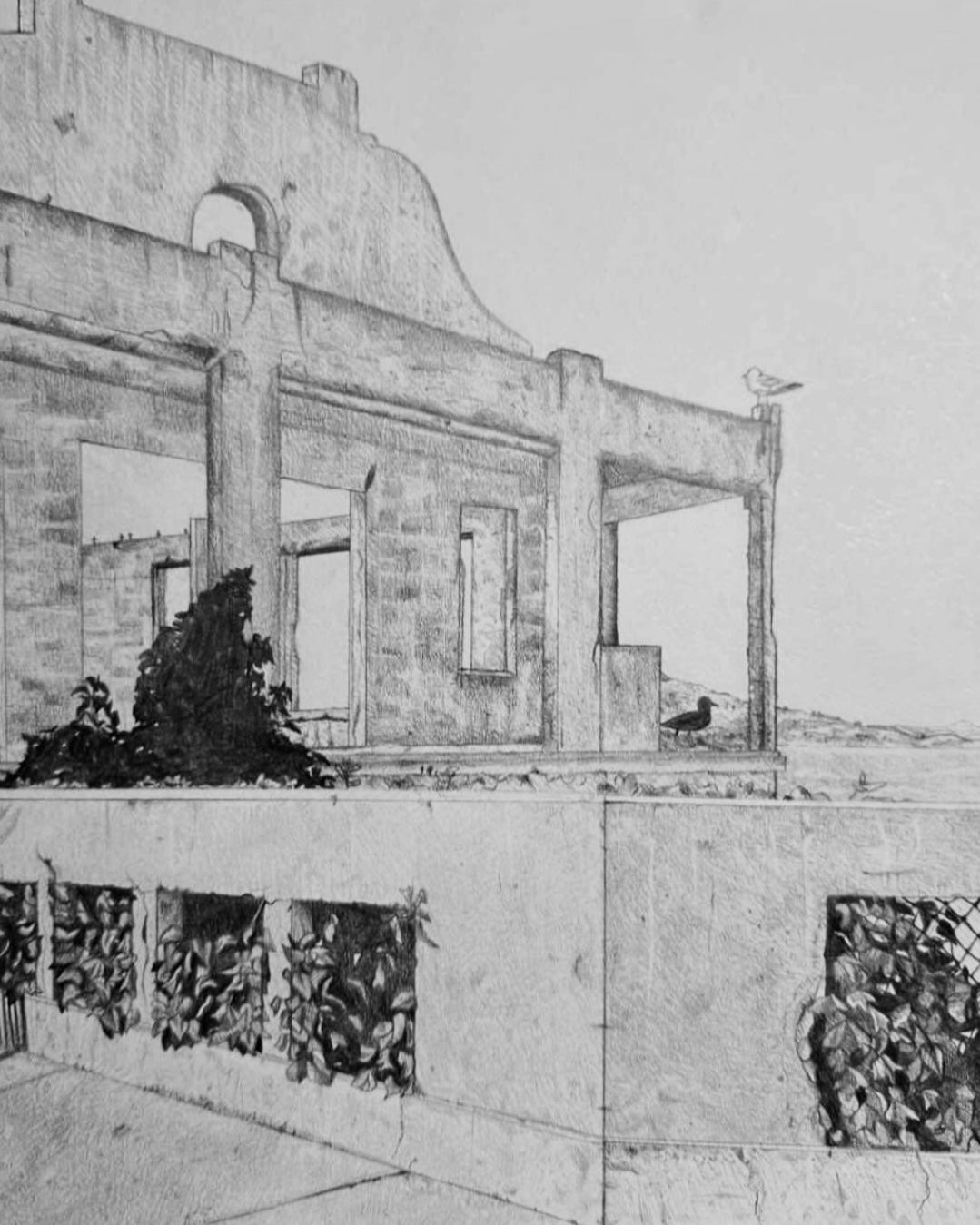 8"x10" print of a graphite drawing of Alcatraz Island.