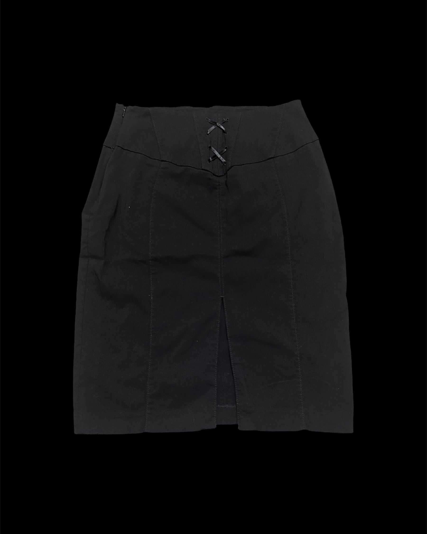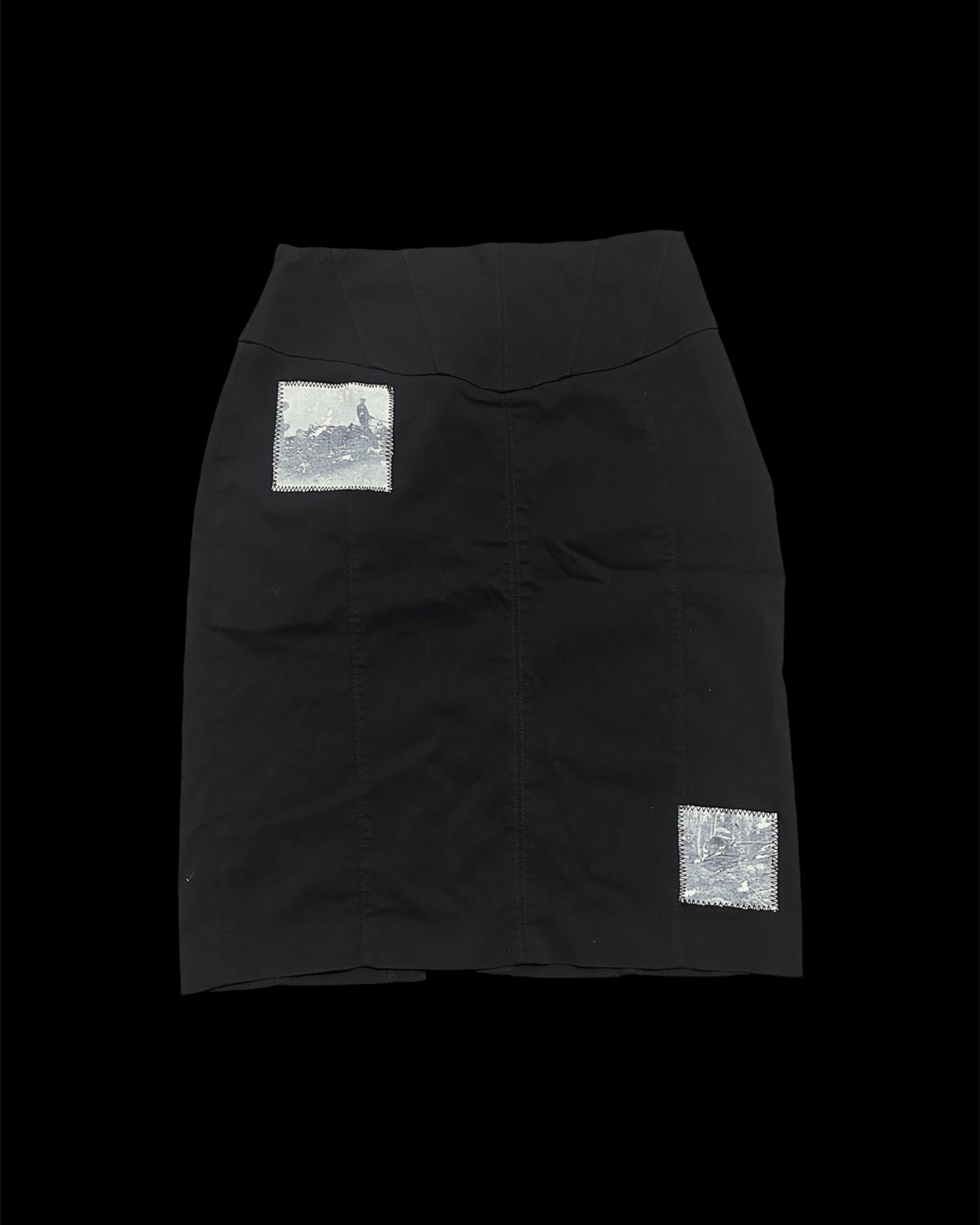 Black midi skirt with two handmade patches made from vintage LIFE magazine photos.