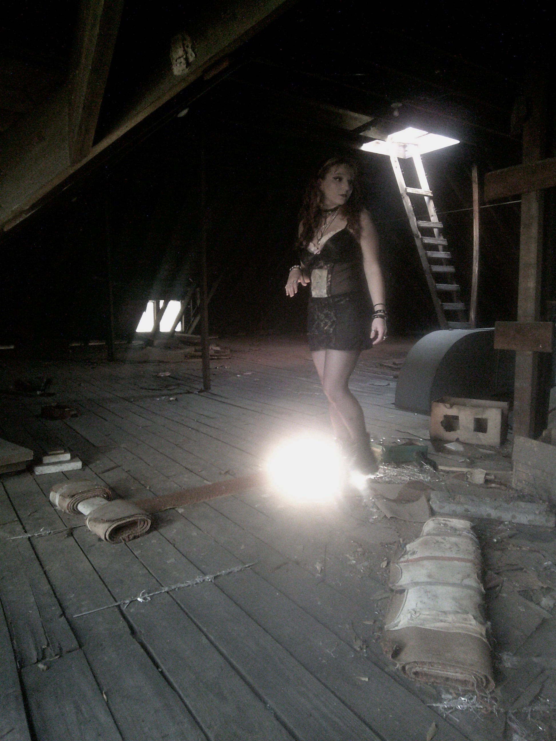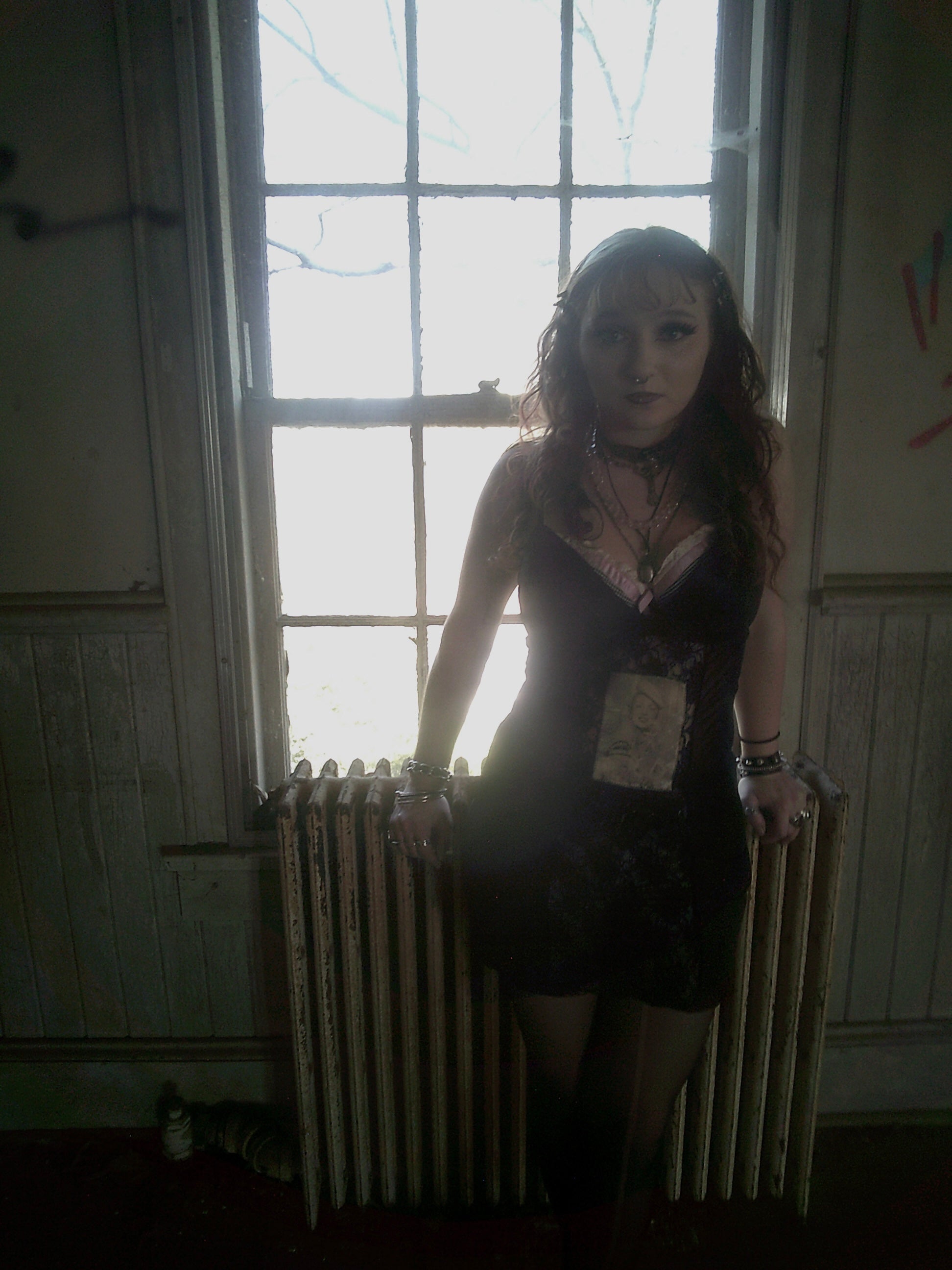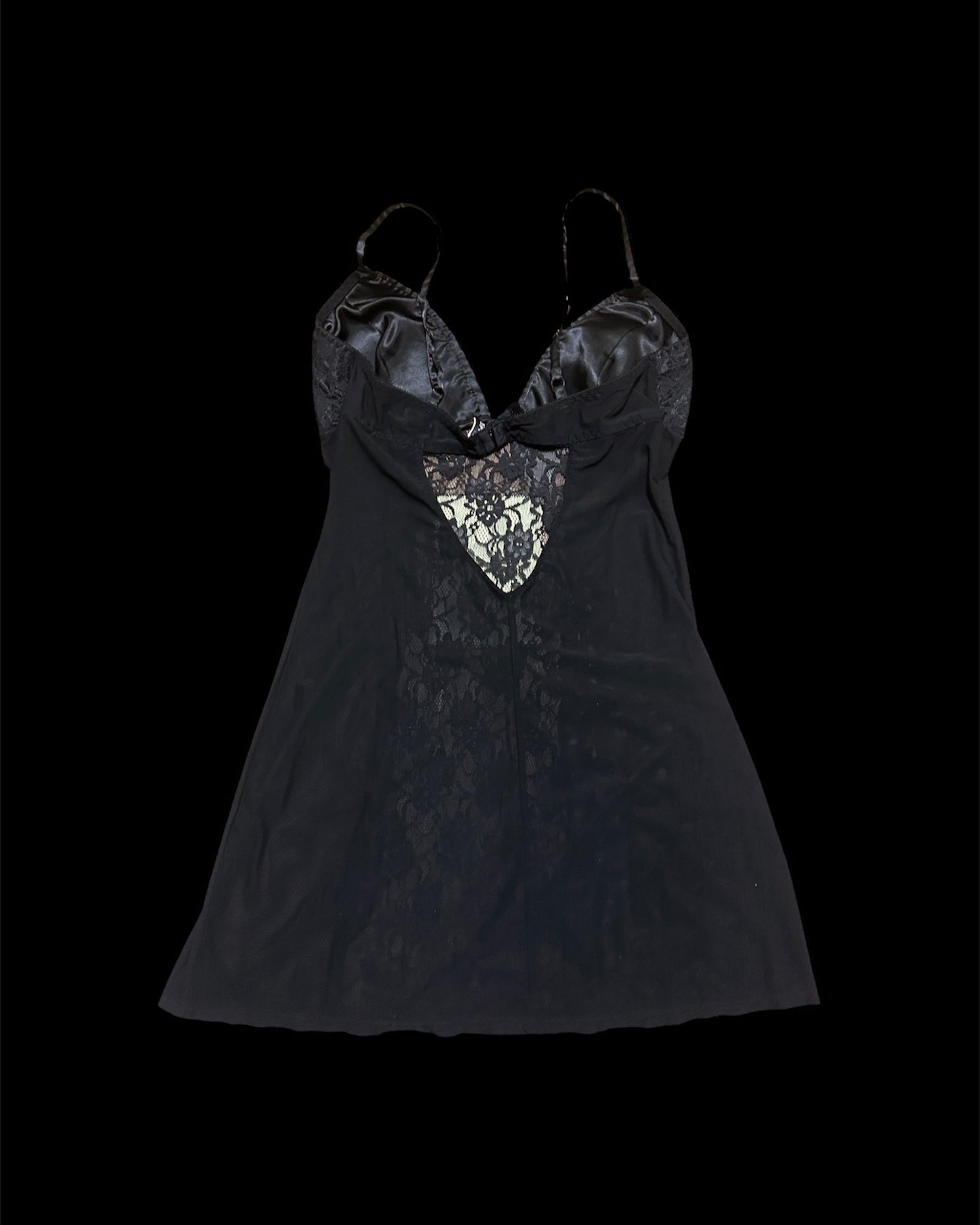 Black sheer lace lingerie top with adjustable straps, and a handmade patch made from a vintage LIFE magazine photo.